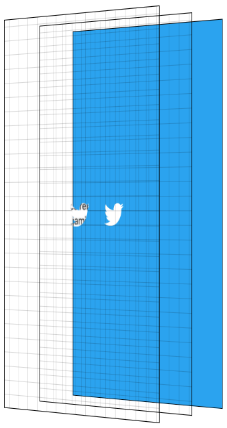 We use the Twitter logo as a mask, and having it mask two layers; the solid white layer, and the app layer.